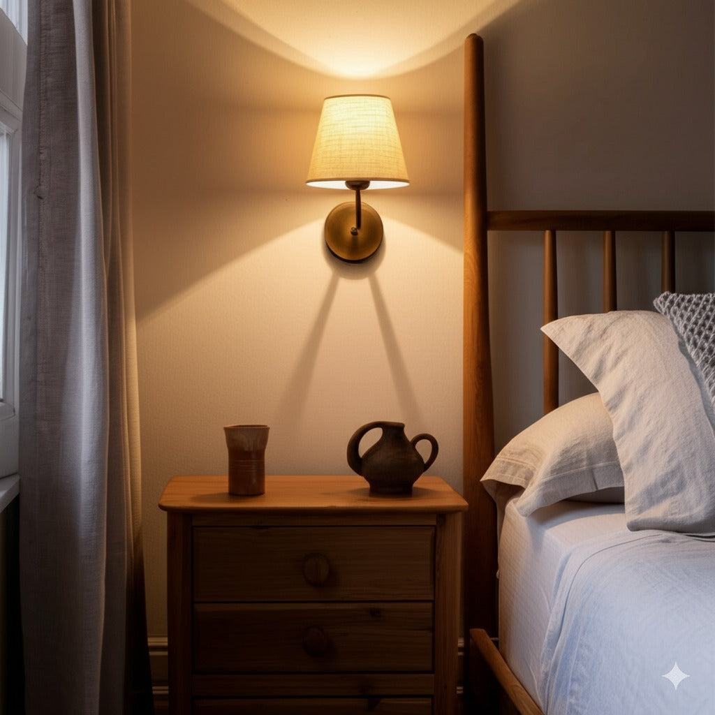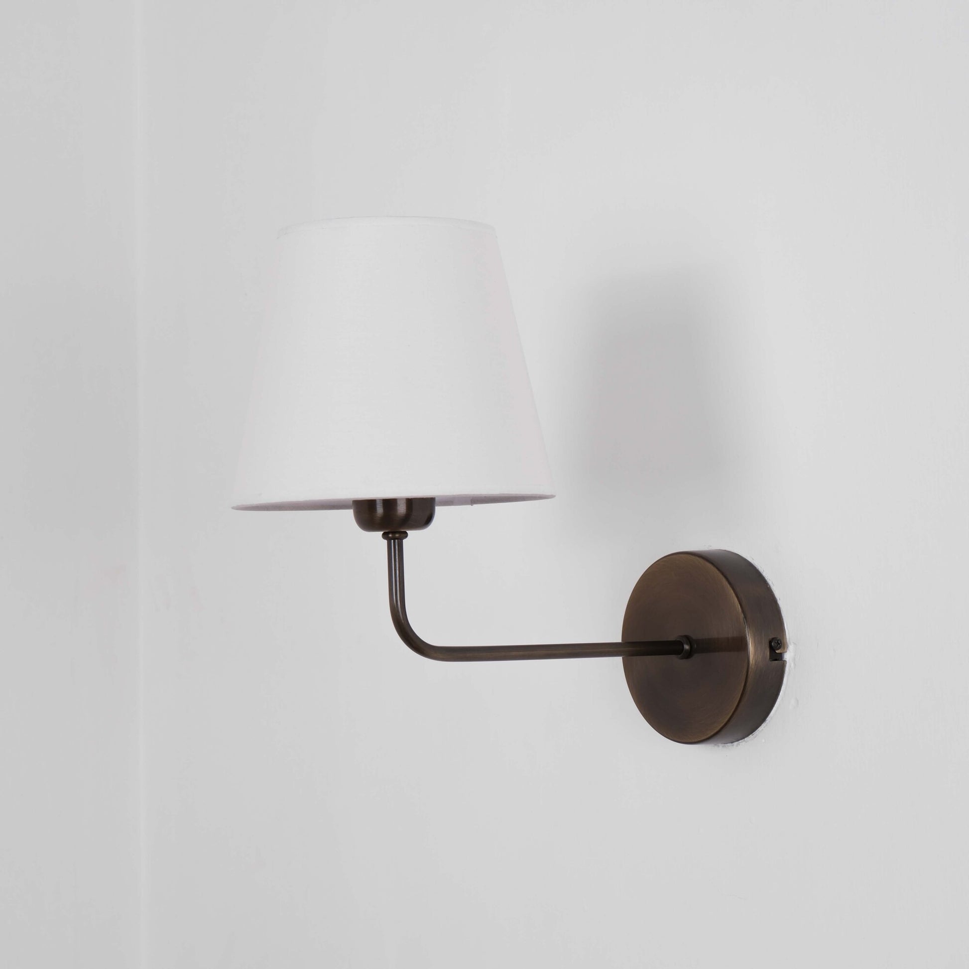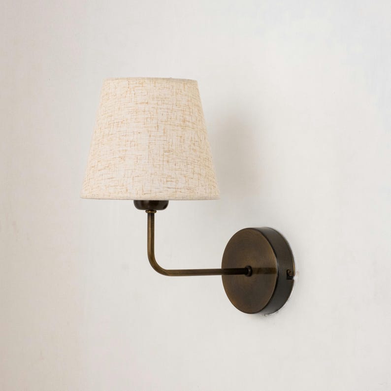 The sconce is crafted from durable metal and linen fabric for a timeless, elegant look.
