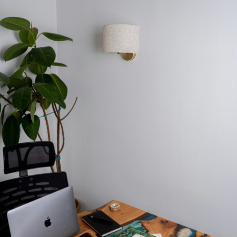 The sconce is crafted from durable metal and linen fabric for a timeless, elegant look.