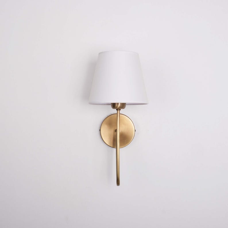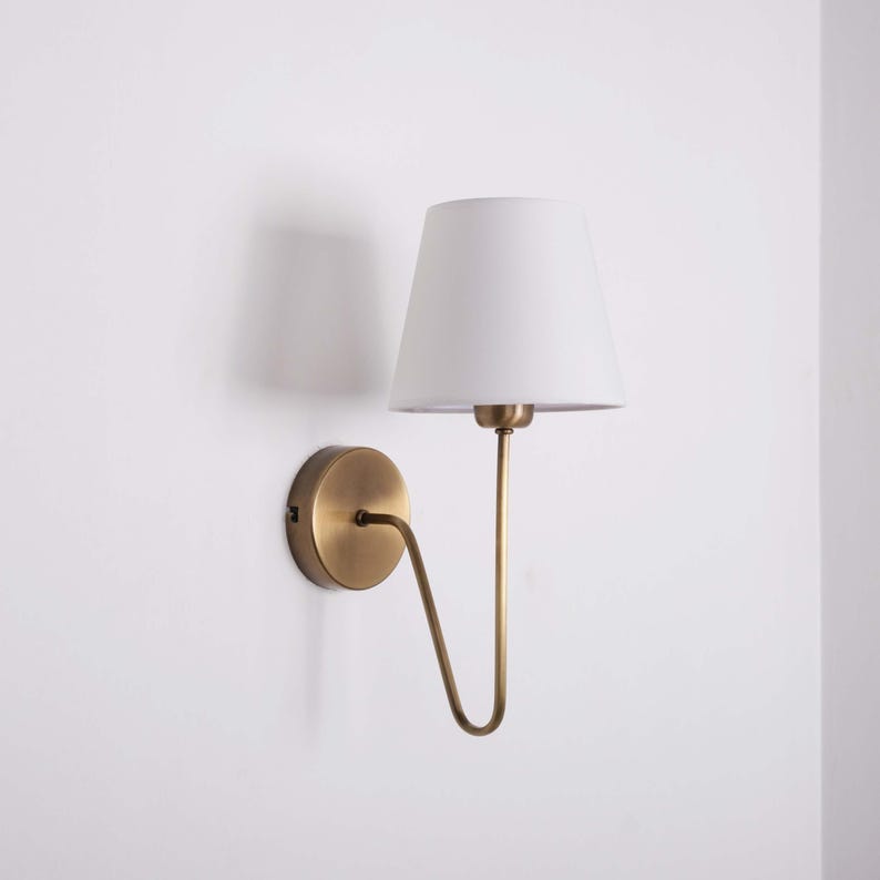 This elegant wall sconce features a vintage brass finished arm and a crisp white lampshade, creating a timeless look that fits beautifully in both modern and traditional interiors. Whether you're decorating a bedroom, hallway, living room, or reading corner, this light adds warmth and charm to any space.