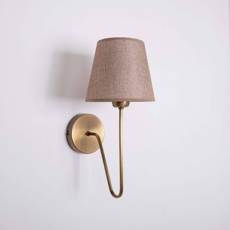 The sconce is crafted from durable metal and linen fabric for a timeless, elegant look.