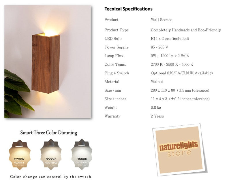 This unique wall sconce , the first member of the Naturelights family, is the ideal option to bring the perfect atmosphere of nature to its environment.While designing this high-quality sconce, we used solid walnut or beech wood in its most natural form to best represent simplicity, modernity and elegance.